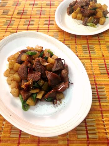 金曜日は中国料理・石川先生。「砂ずりとジャガイモの炒め物」