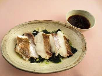 月曜日は、日本料理・岡本先生。「鯛とわかめの酒蒸し」