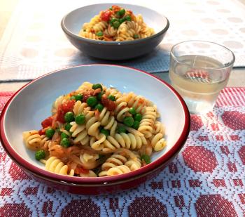 月曜日は、西洋料理 小池先生「サケとグリンピースのパスタ」