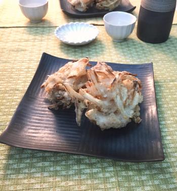 金曜日は、日本料理 岡本先生「玉ねぎと豚肉のかき揚げ」