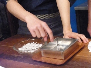 収録の進行にあわせて、準備する羊羹の状態に余念のない助手の植尾先生。