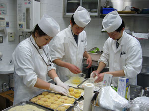 ↑スタジオ裏を覗いてみると、先生達が仲良くコロッケの下準備中!