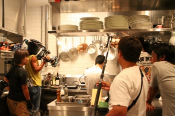厨房と、レストランの数分のシーンの撮影でしたが一日がかりです。