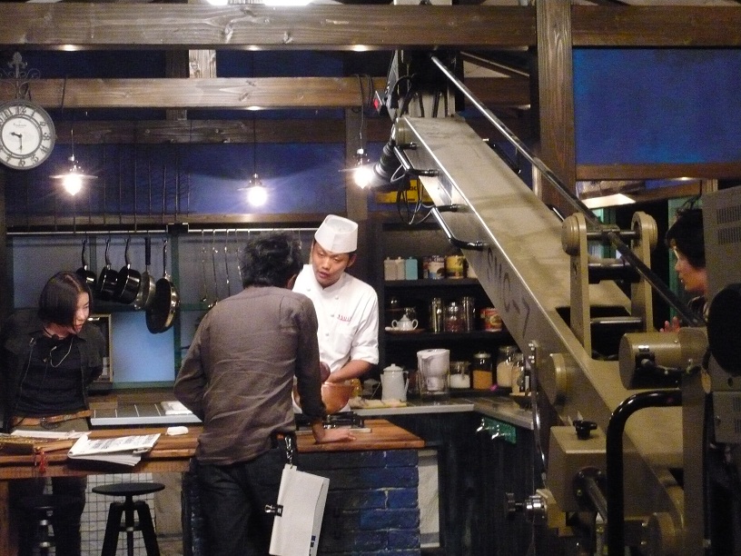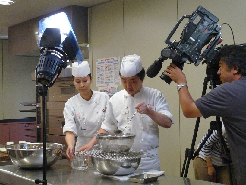 スタジオ収録日に先立って行われた、辻製菓専門学校でのロケの様子。