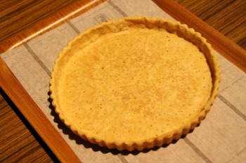 パイ生地をしっかり伸ばして、型にはめ込んでください。