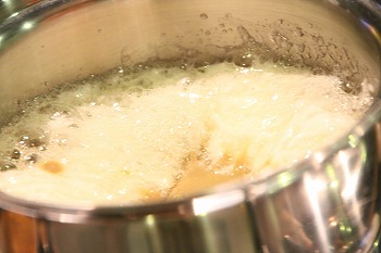 さらに熱したシロップに、粉砂糖と卵白をまぜたものをいれるとあら不思議!