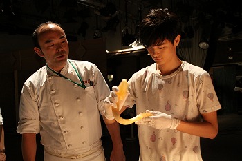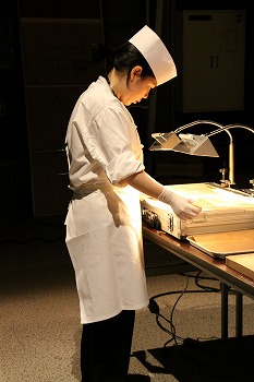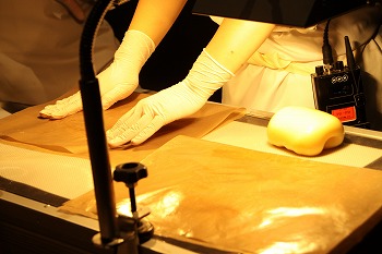撮影にあわせて、飴を温めつつ、固くならないように保ちます。