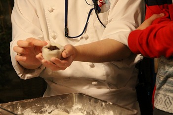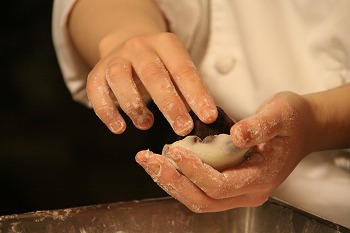 かぶせた生地を少し伸ばして、あん全体を包むようにします。
