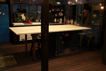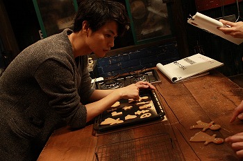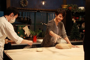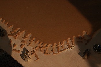 収録で残った大きな生地に、スタッフの方がセットの脇で型ぬきしてました。