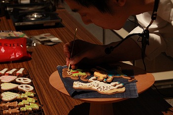 さて、ヘンゼルは作ったクッキーにアイシング。
