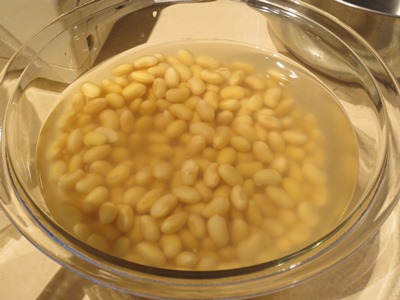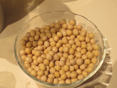 一晩水に浸けておいた大豆を用いて豆乳作りから。まずは大豆の堅さを確認。断面が平らにちょうどよさげです。