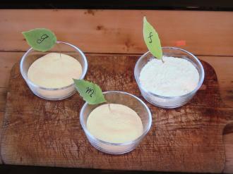 左から、「コーングリッツ」「コーンミール」「コーンフラワー」