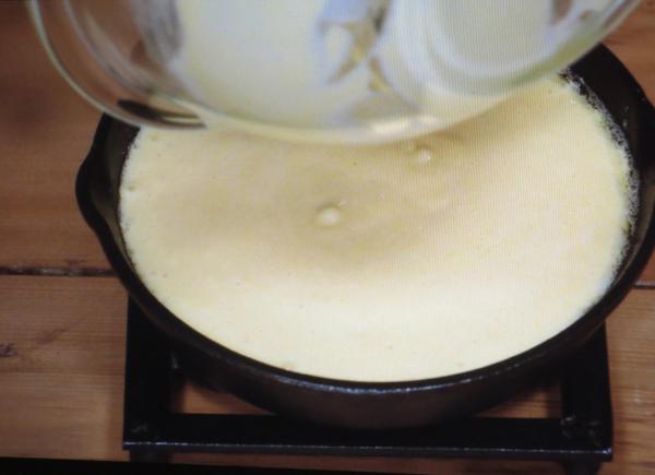 そして、アッツアツに熱したスキレットに生地を流し込んで、