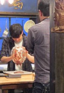 レシピ指導をする野口恵先生と段取りの打ち合わせ。