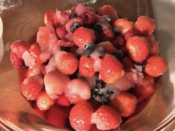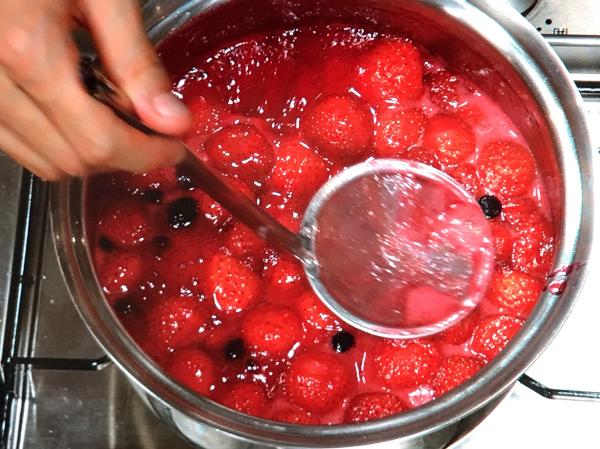 フレッシュのイチゴに冷凍のブルーベリーとフランボワーズを加えて色も味も濃厚に。