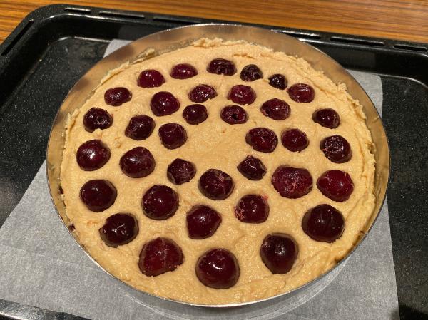 そしてアメリカンチェリーをたっぷり乗せてオーブンへ。
