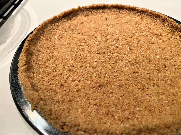 砕いたサブレとバターを合わせたら、周りを山型にしてパイ皿に広げます。
