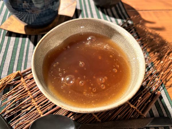 風味が損なわれるので、アクはあまり取り除かないでね。