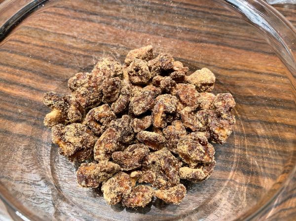 濃度をつけた黒糖の蜜に絡めて表面を結晶化させ、きな粉をふってみました。