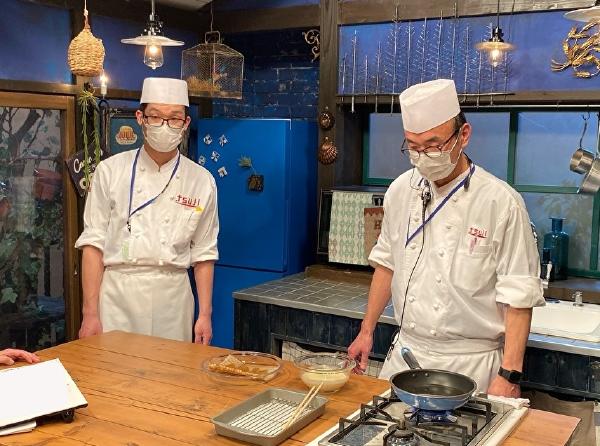 レシピ指導は立嶋穣先生、そして助手の山本純平先生。