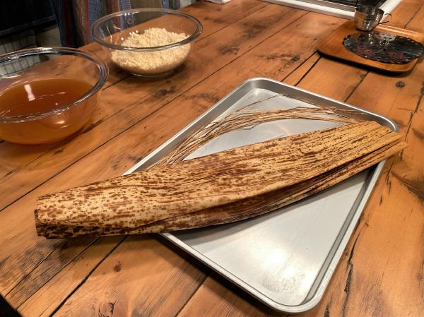たっぷり時間をかけて作る、竹の皮に包まれた黄金色の餅菓子。どんな味なんでしょう。
