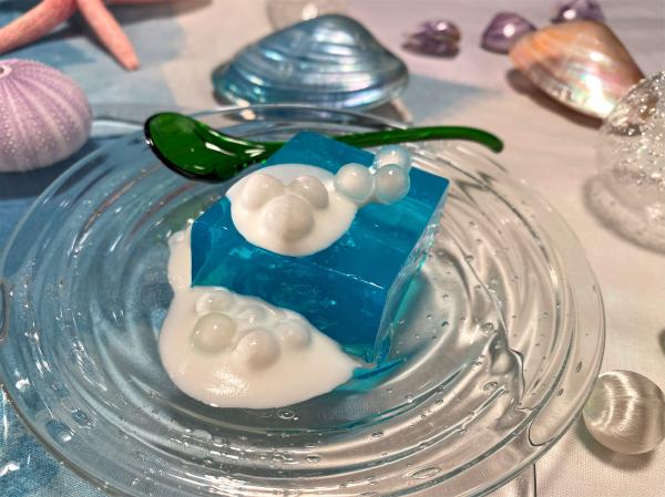 「うみのソーダゼリーしんじゅクリームのせ」。