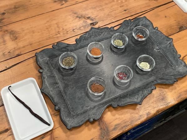 そして、いろんなスパイスを調合して、「龍涎香」風味の液体を作ります。