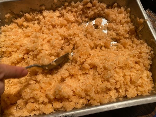 凍らせて、フォークで崩して、また凍らせて、を繰り返し、