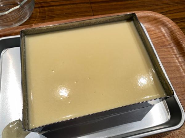 オレンジジュースをメインに、材料を混ぜて型に流し込み。