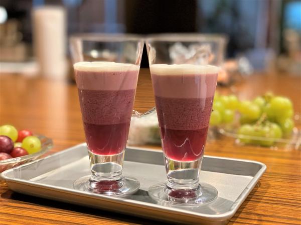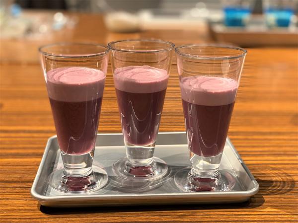 ぶどうジュースをメインに、材料を混ぜて。早速2色に分かれてきましたが、