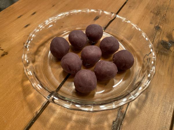 耳たぶくらいの硬さになるまでこねます。いろんな形が作りやすいように上新粉は多めに。