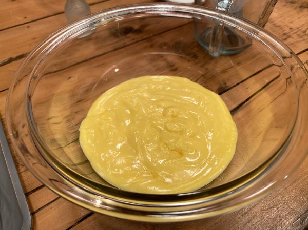 とろみが出てきたら火から外して卵を素早く混ぜ、粗熱を取ります。