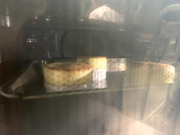 オーブンの扉ごしでちょっと見にくいですが、膨らんでいる様子わかりますか。