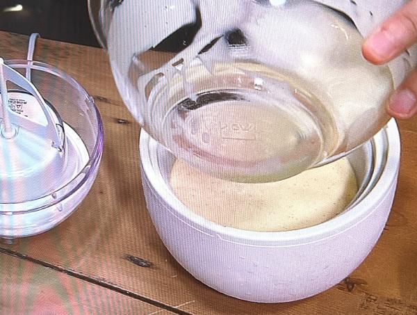そして、完成したバニラアイスクリーム3分の1を冷えた容器に入れ、