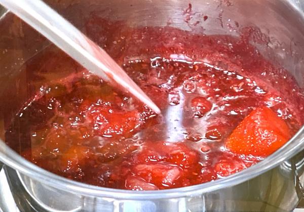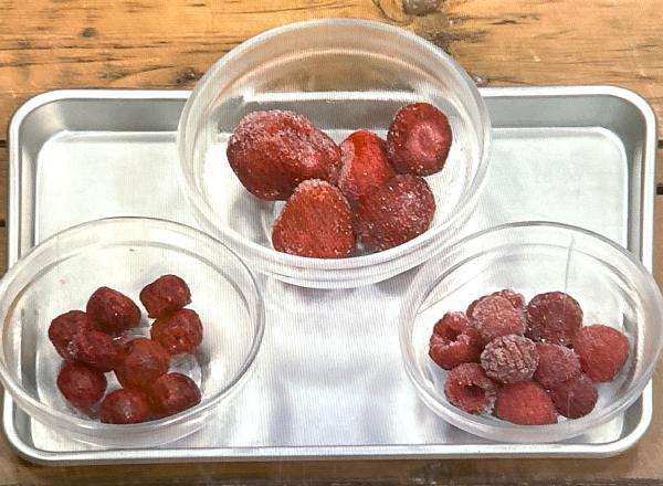 冷凍したイチゴ、ラズベリー、グリオット(さくらんぼ)を使ってベリーソースを作ることに!