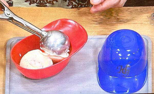 できあがったアイスクリームは、野球のヘルメットを容器にします。