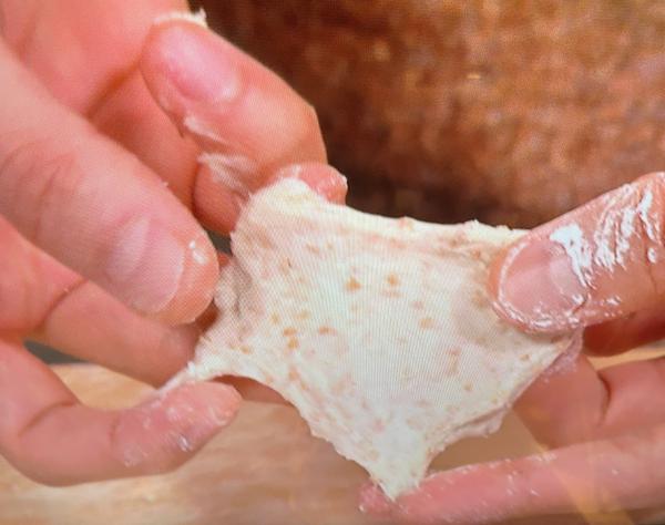 ある程度、まとまってきたらグルテンの膜がきちんとできているか確認。