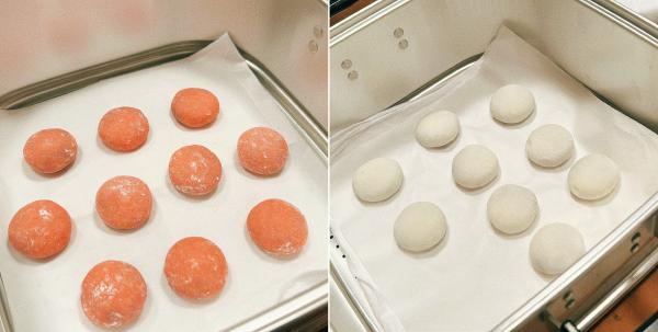 蒸しあがった紅白のまんじゅうは粗熱をとり、