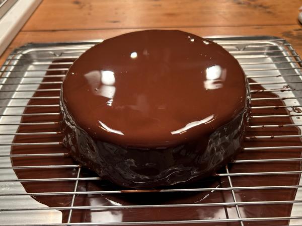 さらにさらに、上からチョコレートをたっぷりかけて冷蔵庫で冷まします。