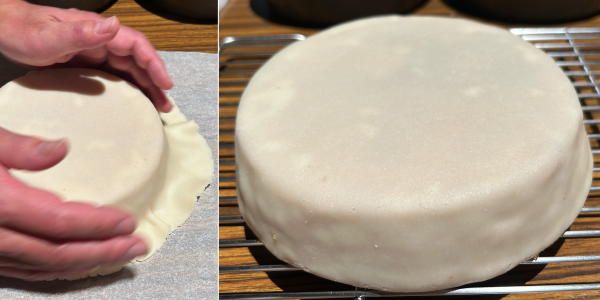 そして、かまどが伸ばしてくれたマジパンで包みこみ。はみ出たところは切り落としてね。