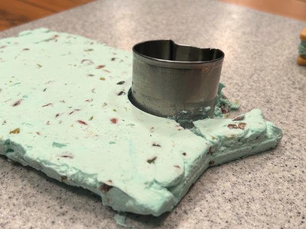 クッキーでサンドして、アイスサンドクッキーの完成!断面もキレイですね~