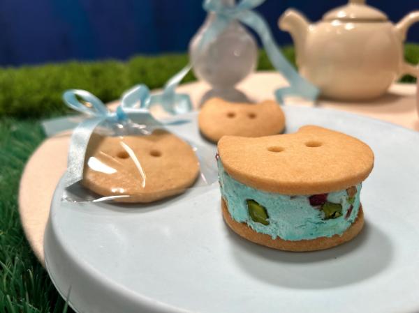 青いリボンをイメージしたアイスサンドを作りましょう。