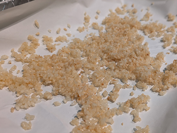 お米を洗ってぬめりをとったあとは2日間乾燥させて水をきっちり逃がしていきます。