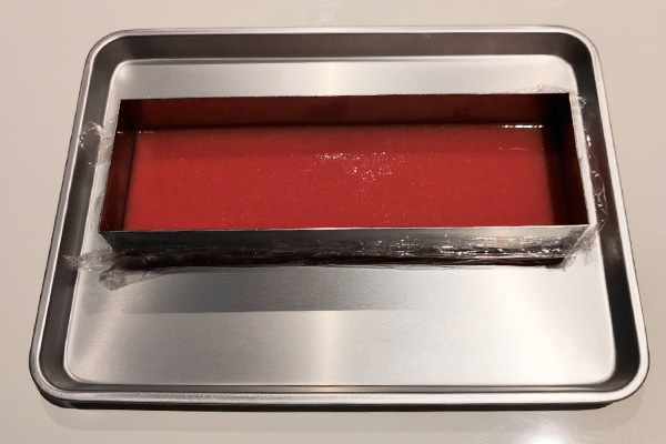 きたらラップを敷いた型に流して冷まします。
