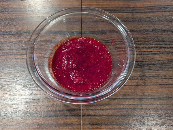 鍋に冷凍イチゴ、冷凍ラズベリー、グラニュー糖を入れたら沸騰するまで温めます。