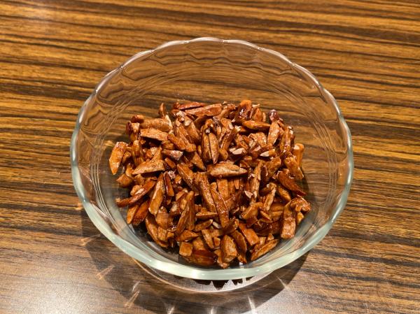 トッピングにはキャラメリゼしたアーモンドとホットファッジ(温かくて濃厚なビターチョコレートソース)を作りました。