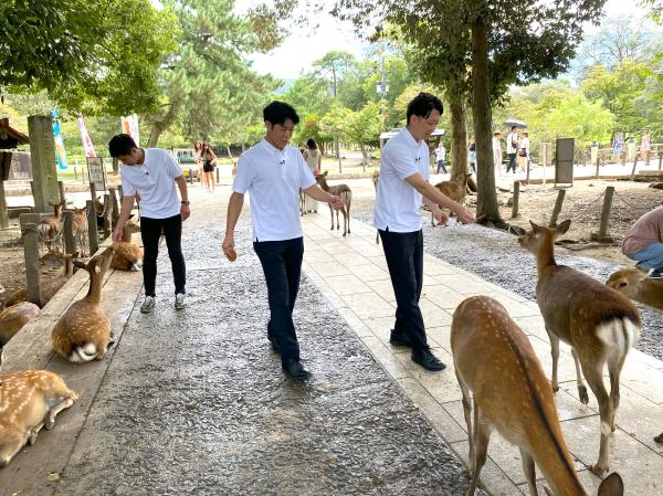 ご多分に漏れず、先生たちはちょっとテンション高めに鹿と戯れたり、
