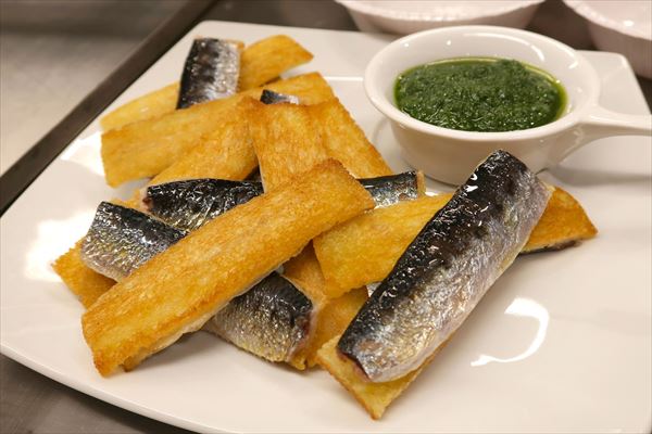 西洋料理の「いわしのさくさくタルティーヌ」。