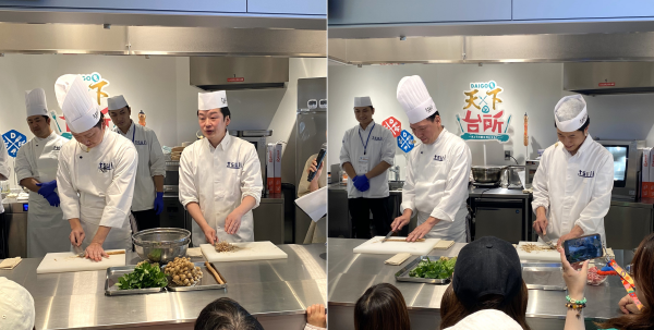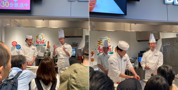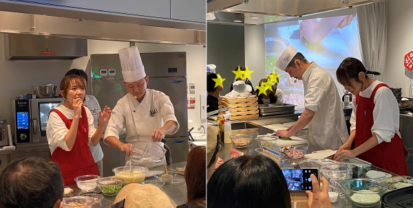 今回のイベントは、目の前で先生たちが作った料理を試食していただくだけでなく、