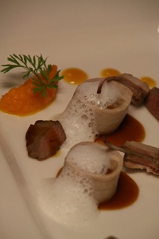 次は、温かい前菜、フォアグラを詰めたうさぎの背肉。